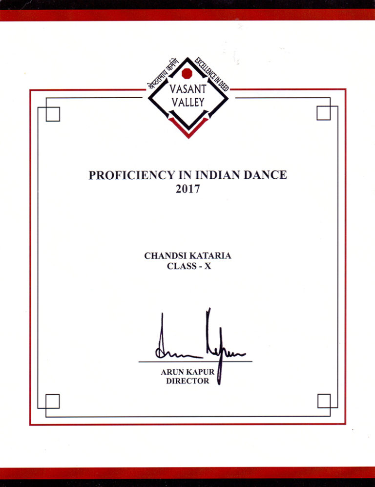 - Awarded Proficiency in Indian Dance for Eight consecutive years (2011- 2019)