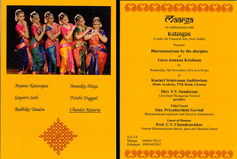 Performed at the Kasturi Srinivasan Auditorium Music Academy, Chennai with the senior disciples of Guru Jamuna Krishnan
